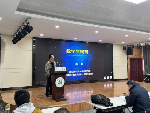 2026年3月15日上午,国防科技大学李超教授应邀来访我院,并于我院院八楼报告厅作了题为《数学与密码》的学术报告。